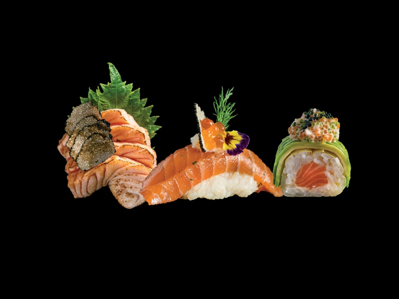 4 salmon truffle sashimi, 2 wold cup nigiri, 8 piese shrimp truffle maki x 14 piese